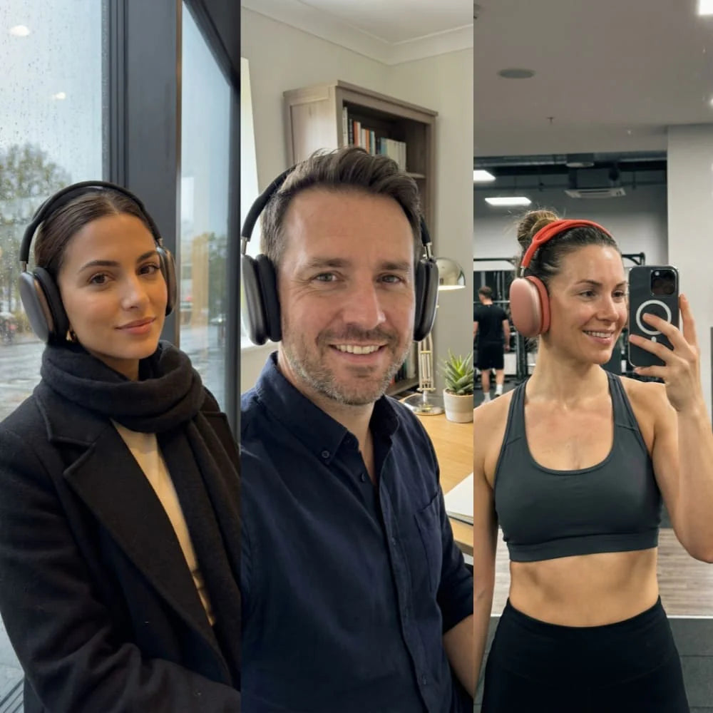 Der adaptive Kopfbügel verteilt den Druck gleichmäßig, während die weichen Ohrpolster aufliegen, statt zu pressen. Viele merken nach kurzer Zeit kaum noch, dass sie Kopfhörer tragen.